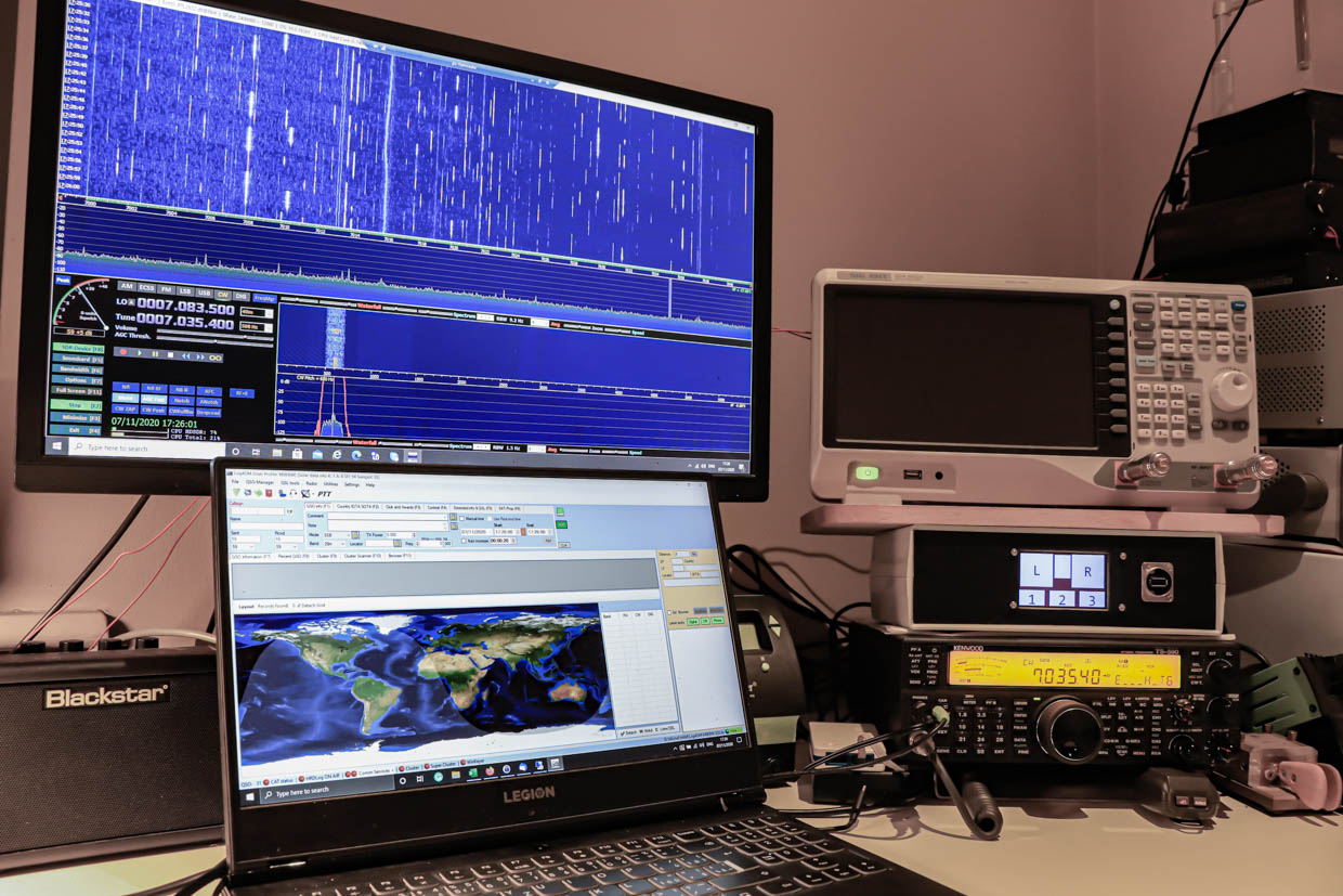 I have already presented this homemade antenna where the inductance can be changed in steps. Then the fine-tuning was performed by changing the length of the top telescopic section of the antenna. This configuration works well but in many cases is not practical especially when the antenna is placed on the roof of a car, so the antenna must be dismounted when the band needs to be changed or when the change from SSB to CW segment of a band is required. Also, the efficiency is given by the length of the antenna, so the best choice is to keep the antenna at its maximum length. Therefore, I was looking for other options and mechanical realisations and I found an antenna (Komunica HF-PRO-2-PLUS-T) with a continuously tunable coil and a telescopic whip. The antenna came with the main tunable coil, an extending coil for 80m band and a telescopic whip. The length of the antenna is only 30cm when disassembled and 2.7m when extended. So far I am very happy with it. I am not sure if the antenna is water-resistant. I think it is better to avoid such weather conditions when possible. The antenna can be tuned only by shifting the coil which makes the whole tuning process significantly easier and faster.