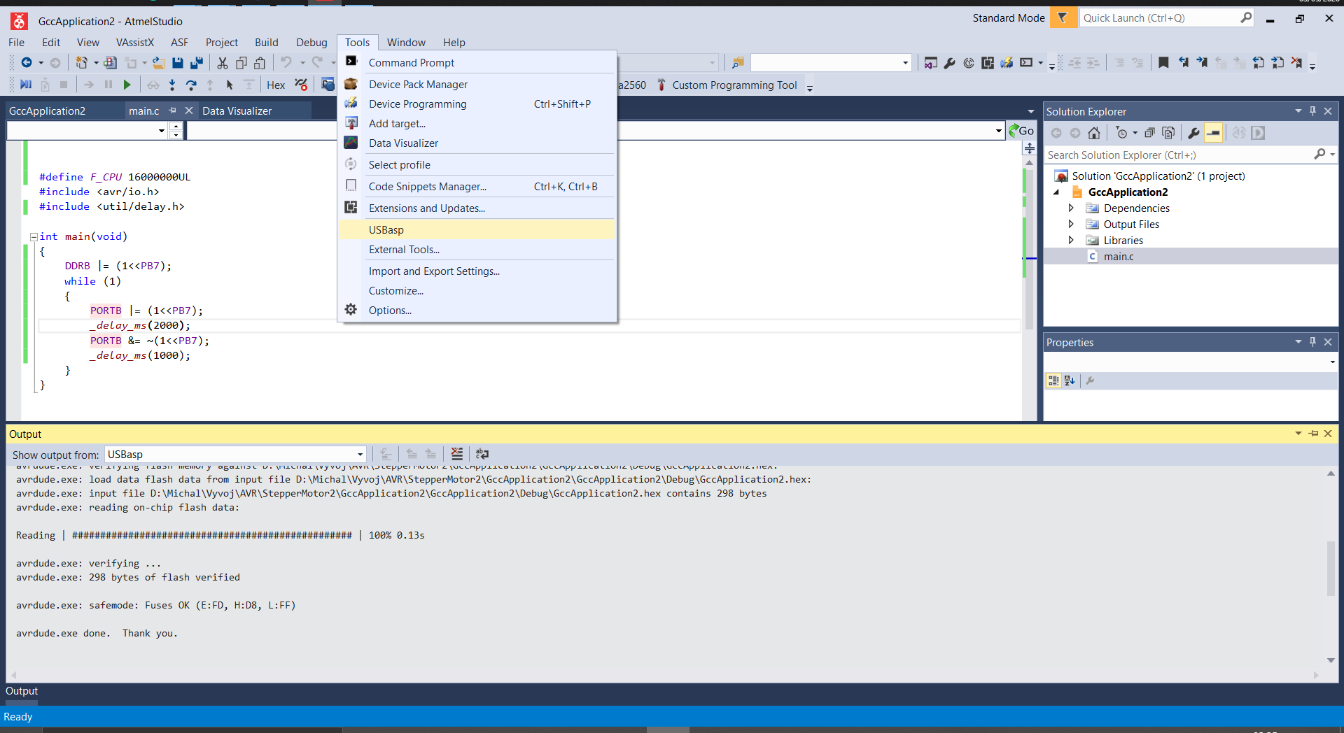 11. Press Tools -> USBasp to program your microcontroller. Good luck!
