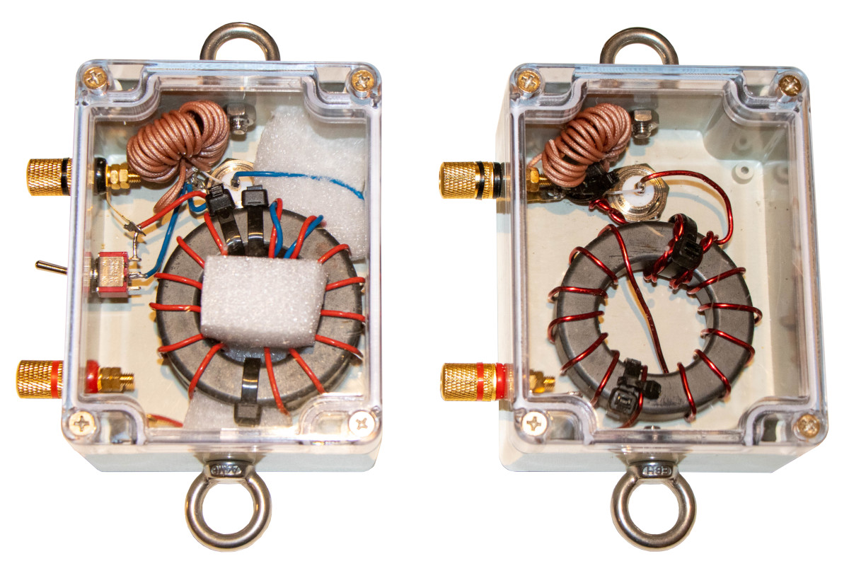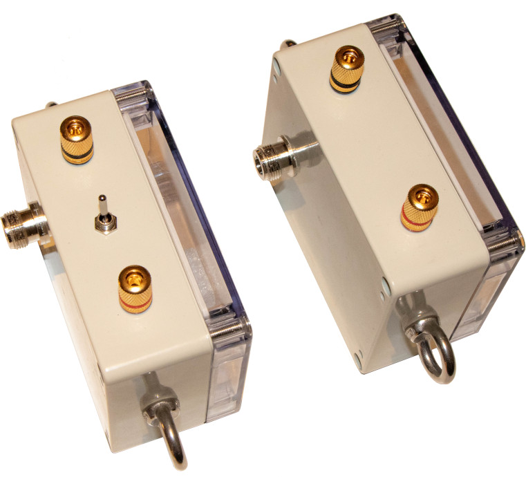 This article presents my construction of an impedance transformer designed for an end-fed half-wave dipole (EFHW). The advantage of an EFHW dipole is that it does not have to be fed in the centre as well as multi-band operation. The disadvantage of such a configuration is the high impedance (thousands of Ohms) at the feeding point. Unfortunately, in comparison with the centre-fed dipole and its well-defined impedance, the impedance of the EFHW antenna can be somewhere between 2000Ω to 5000Ω. There are several options on how to feed this kind of antenna. Parallel resonation circuits which are tuned for a specific band are very popular. The other solution is a broadband transformer based on an auto-transformer with an impedance ratio of 1:49 or 1:64. This time, I tried to build two 1:49 transformers based on an FT240-43 ferrite core. Two constructions with one and two ferrite cores were compared. For both cases, 2 turns on the primary side and 14 turns on the secondary side of the transformer were used. A capacitor improving the characteristics at the higher bands was connected to the primary winding. It was made of coaxial cable RG178. Firstly, I tried several options with standard ceramic capacitors as well as variable trimmer capacitors and based on the measured response I determined the best value. Then I cut the coaxial cable to the length that provided roughly the same capacitance and carefully shorted the coaxial cable piece by piece to obtain optimal performance. In my case, the version with one core provided best results when 100pF was used and the version with two cores provided best results at 200pF. Furthermore, I added a switch to the two core design which allows the transformer sides to be galvanically isolated. It provides the option to choose between a wire and a coaxial cable as a counterpoise wire. Please find the images and measurements below.