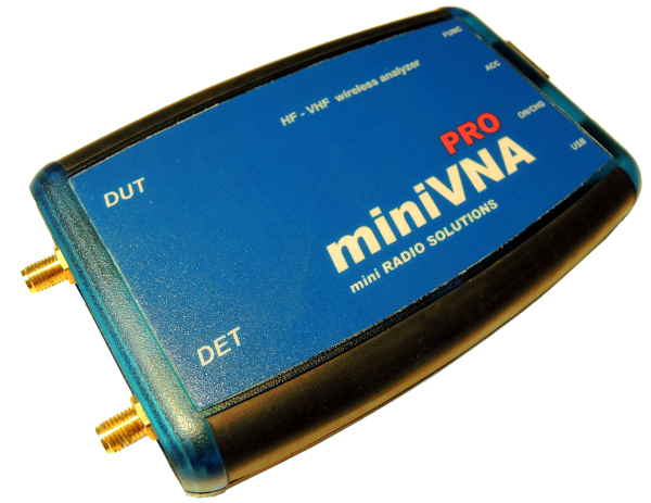 MiniVNA PRO is a small Vector Network Analyzer with frequency range from 100 kHz to 200 MHz.