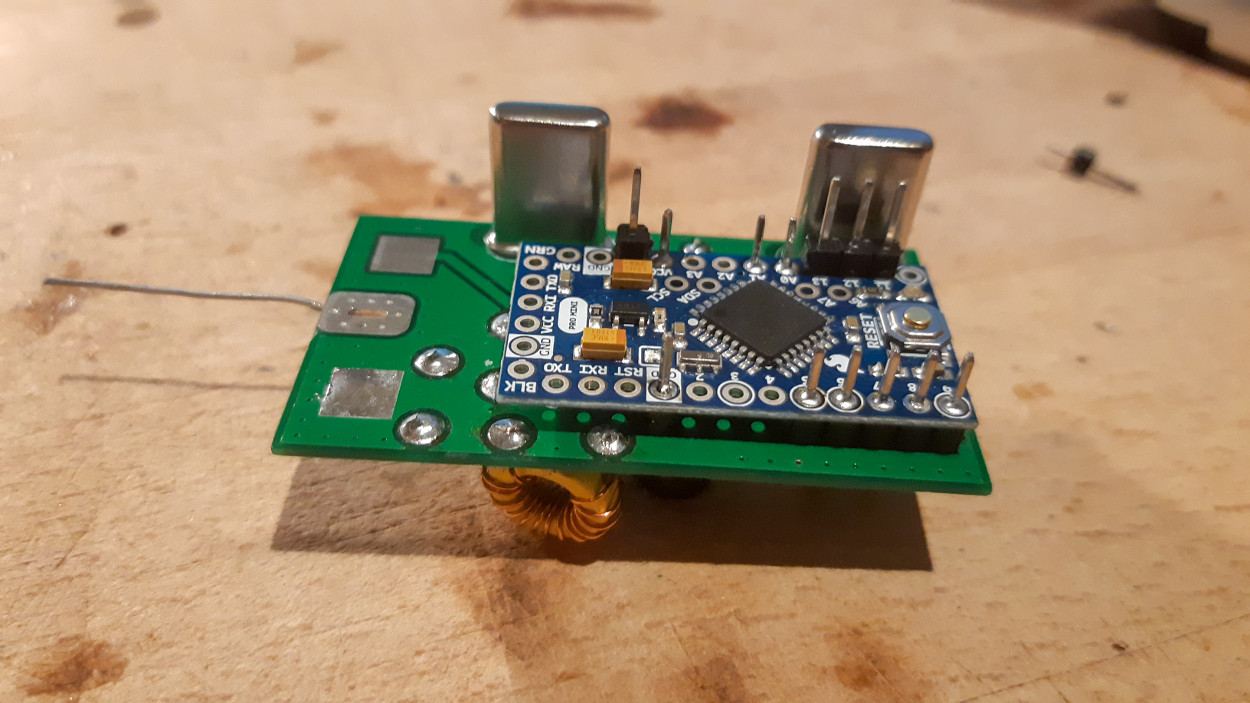 My radiosonde contained two switchable oscillators that worked at 7MHz and 14MHz, one small amplifier, low pass filter and a microcontroller. All of that was powered by solar pannels. When the PCB arrived and a prototype was working, I spent most of the remaining time reducing the unwanted harmonic signals (especially those which were not inside HAM bands) to make sure that my radiosonde does not produce any interference. This part was successful as can be seen from the measurements (the second harmonic was reduced by 40dB at 28MHz and the third harmonic was below the noise).