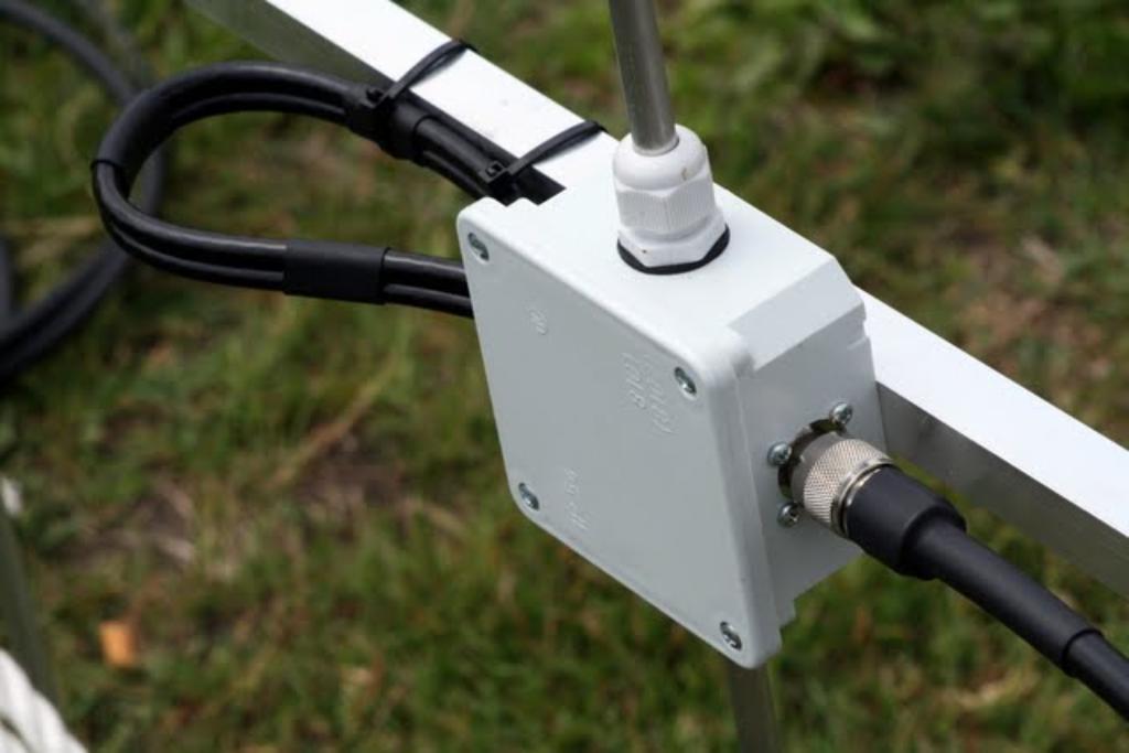 2) 4x5 element Yagi (Boom 2m, 28 Ohm, radiator, parasitic elements 10 mm, 9dBd) + power splitter, stacking distance 2 m